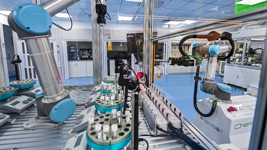移動協作機器人機械臂在進行抓取、碼垛作業時,需同步完成路徑規劃、視覺定位等功能,在一臺機器人上集成搬運、檢測、組裝等多功能,利用AI算法配置調整任務流程,任何延遲都可能影響生產效率。